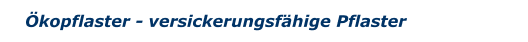 Die Versickerung von Oberflächenwasser erfolgt entweder durch die grobporige Struktur des Steines (Aqua Por), durch die Fugen zwischen den Pflastersteinen (Rasenfugenpflaster und Öko-Pflaster) oder durch Hohlräume in den Steinen. (Rasengittersteine).